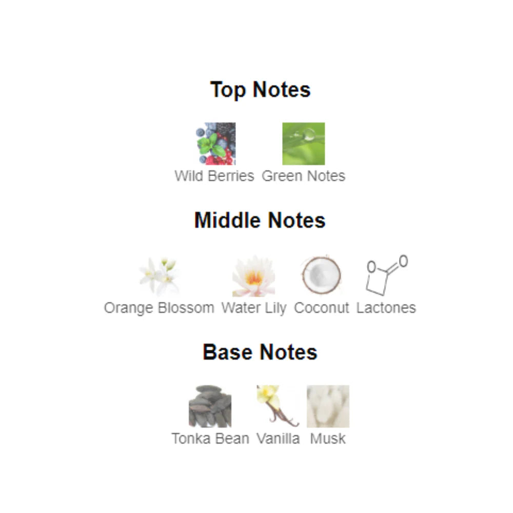 Middle Notes: Orange blossom, water lily, coconut, lactones